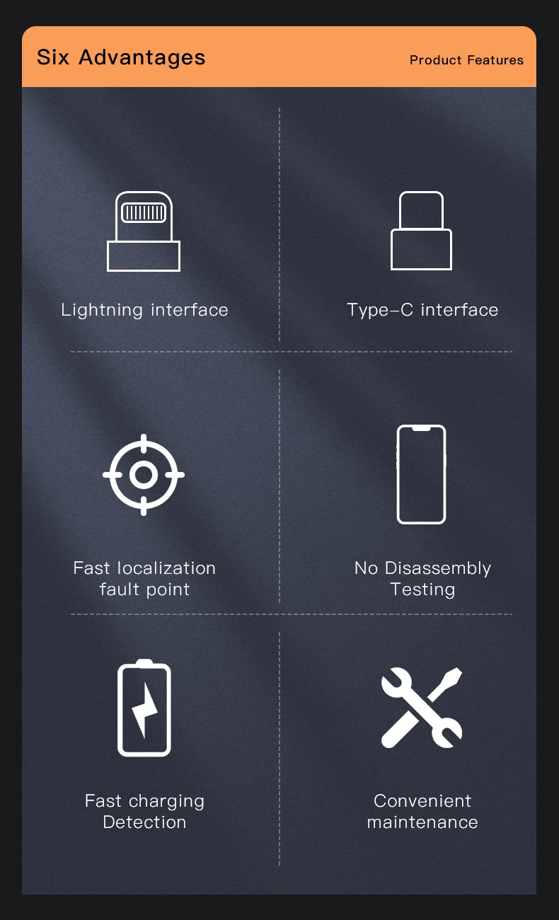 • Diseñado para diagnosticar fallas en conectores de carga y PCB.