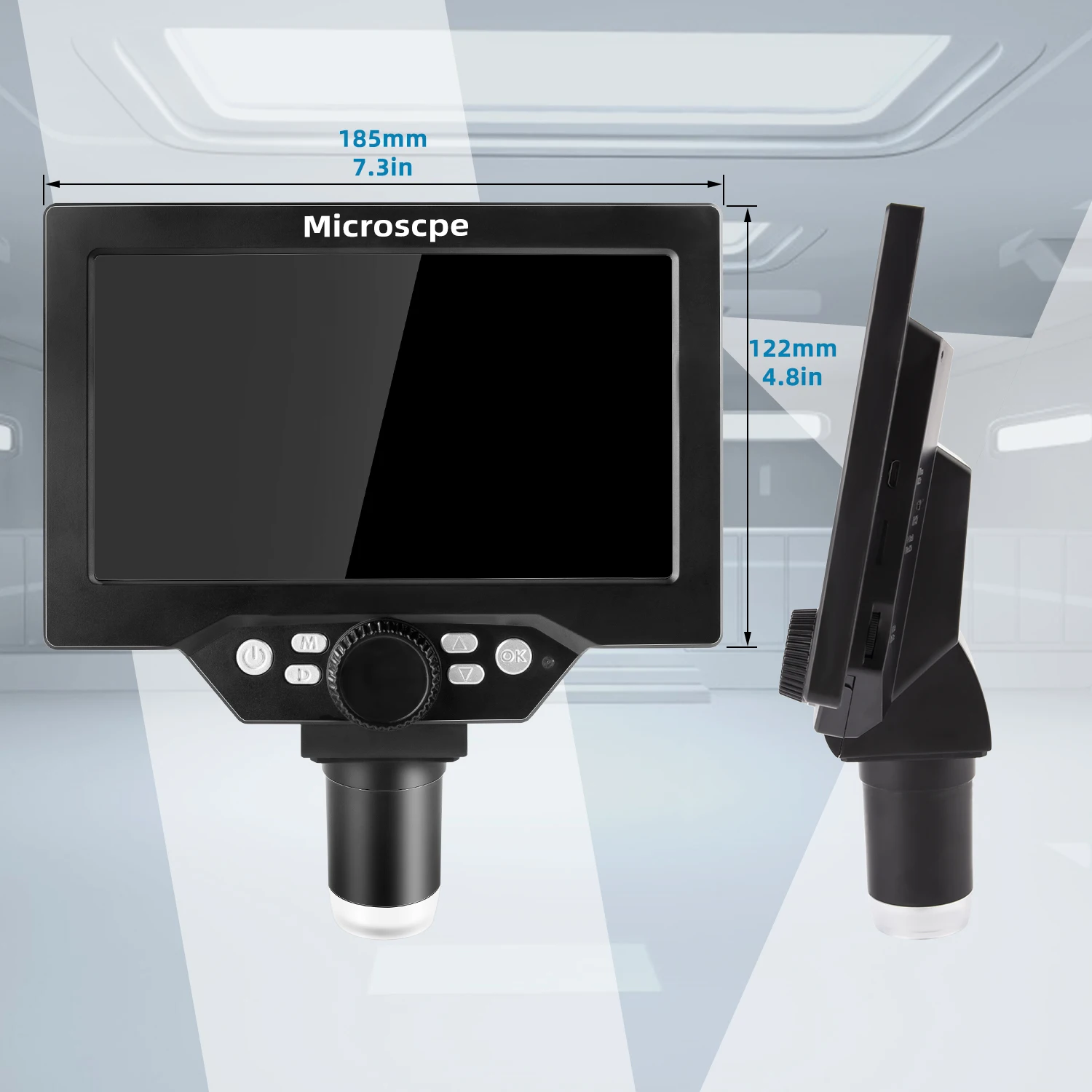 Su pantalla LCD de 9″ muestra la imagen en tiempo real con resolución HD de hasta 16 megapíxeles, ideal para reparación de placas, control de calidad y trabajo académico. El zoom electrónico continuo de 1–1600x te permite acercarte lo necesario para revisar soldaduras SMD, pistas microcortadas o códigos diminutos sin perder detalle.