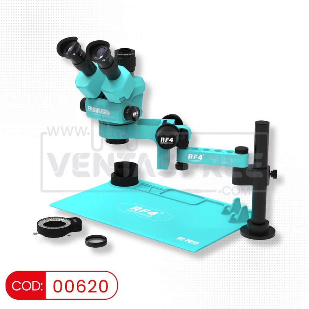 Trinocular profesional + brazo 360 + lampara 144 led + tapete RF4 RF6555 TVP